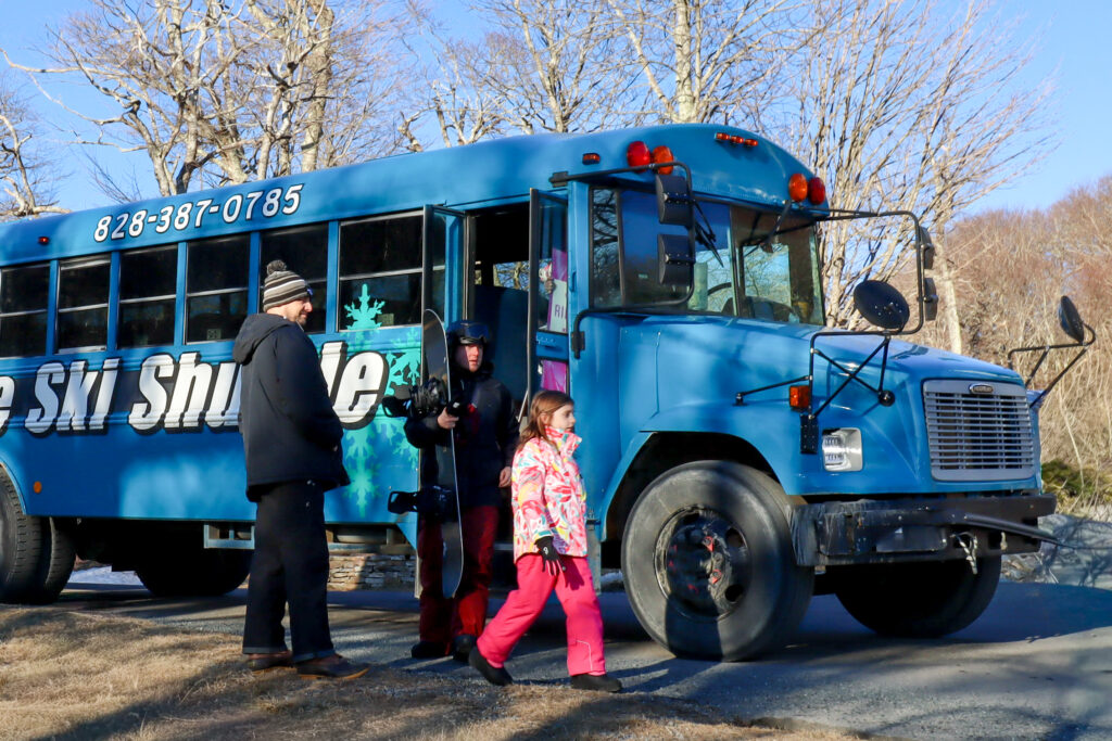 Staying in a vacation rental on Sugar Mountain? The Village Ski Shuttle provides free bus transportation service to the Sugar Mountain Resort Ski Lodge from many stops in the Village. If you are looking for a taxi or uber ride to the lodge, enjoy this free service funded by the Village of Sugar Mountain TDA (Tourism Development Authority). Previously known as the “Sugar Bus”.